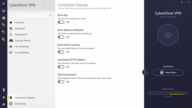 Expat Shield 服务受广告支持,而且速度有上限。挑选优质服务器,不限流量随心所欲享受超大带宽的极速、稳定网络。您还可以购买每日或每周访问权限。您可以选择每月 10 美元的 1 Mbps 速度上限帐户或每月 20 美元的无上限计划。专为免费用户提供的的VPN,具有以下几大功能。您可以通过订阅高级VPN计划,轻松删除所有广告并享受超级VPN服务器。